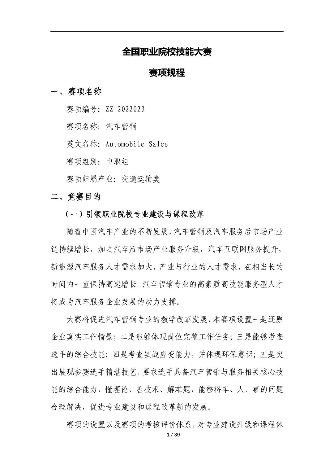2022年全国职业院校技能大赛拟设赛项共102项,其中第23项为【汽车营销】赛项。