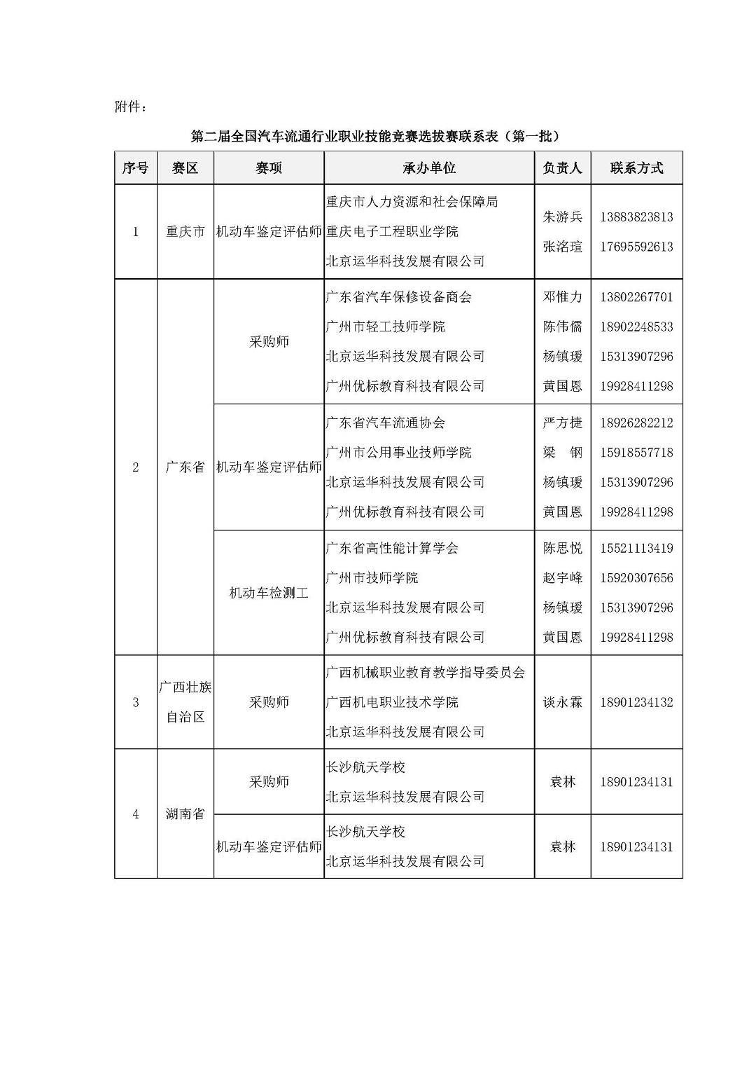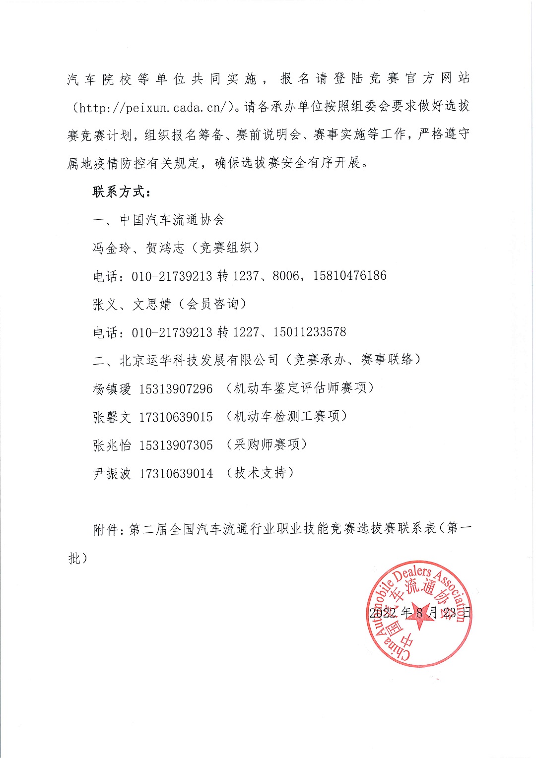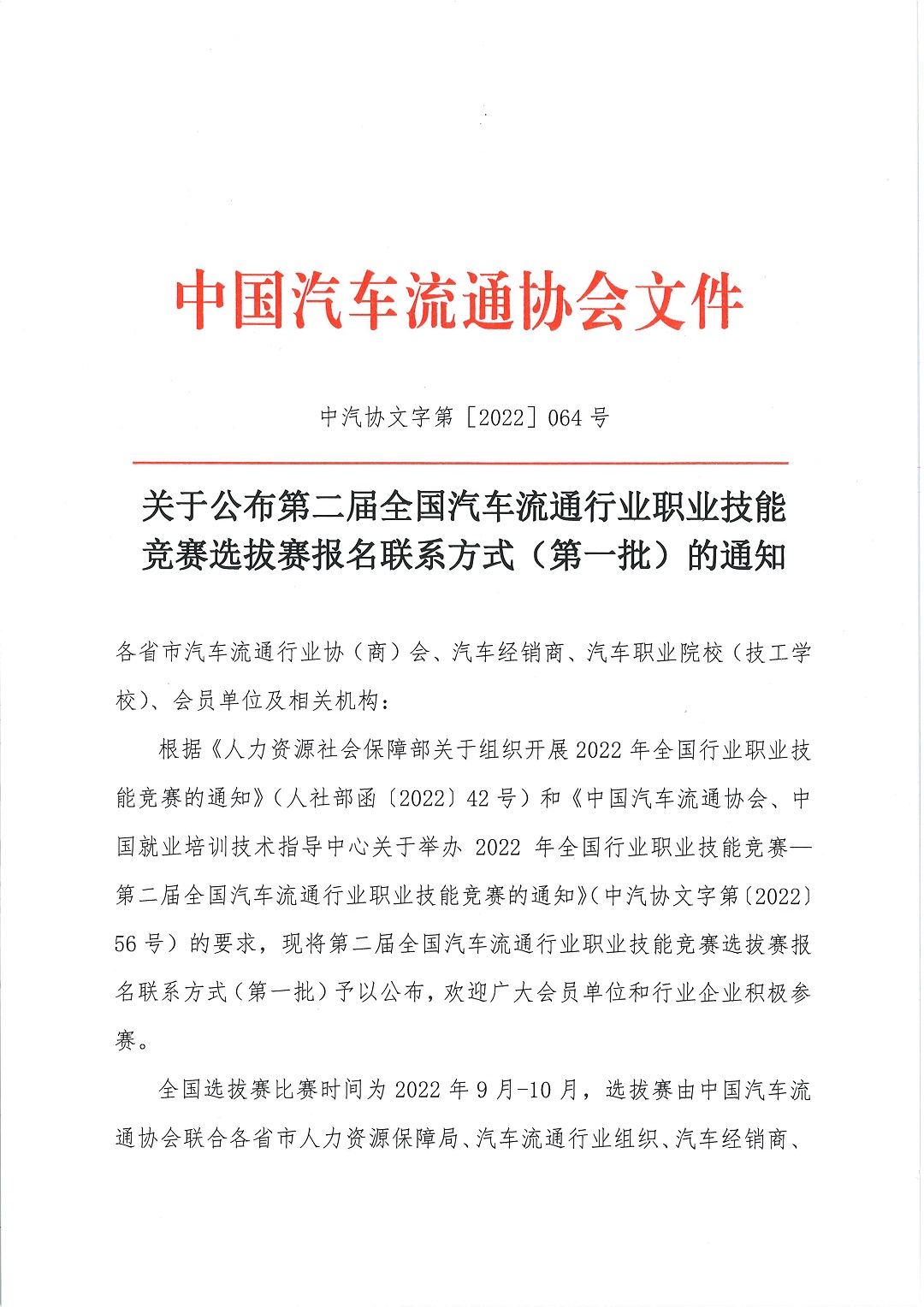 关于公布第二届全国汽车流通行业职业技能竞赛选拔赛报名联系方式(第一批)的通知