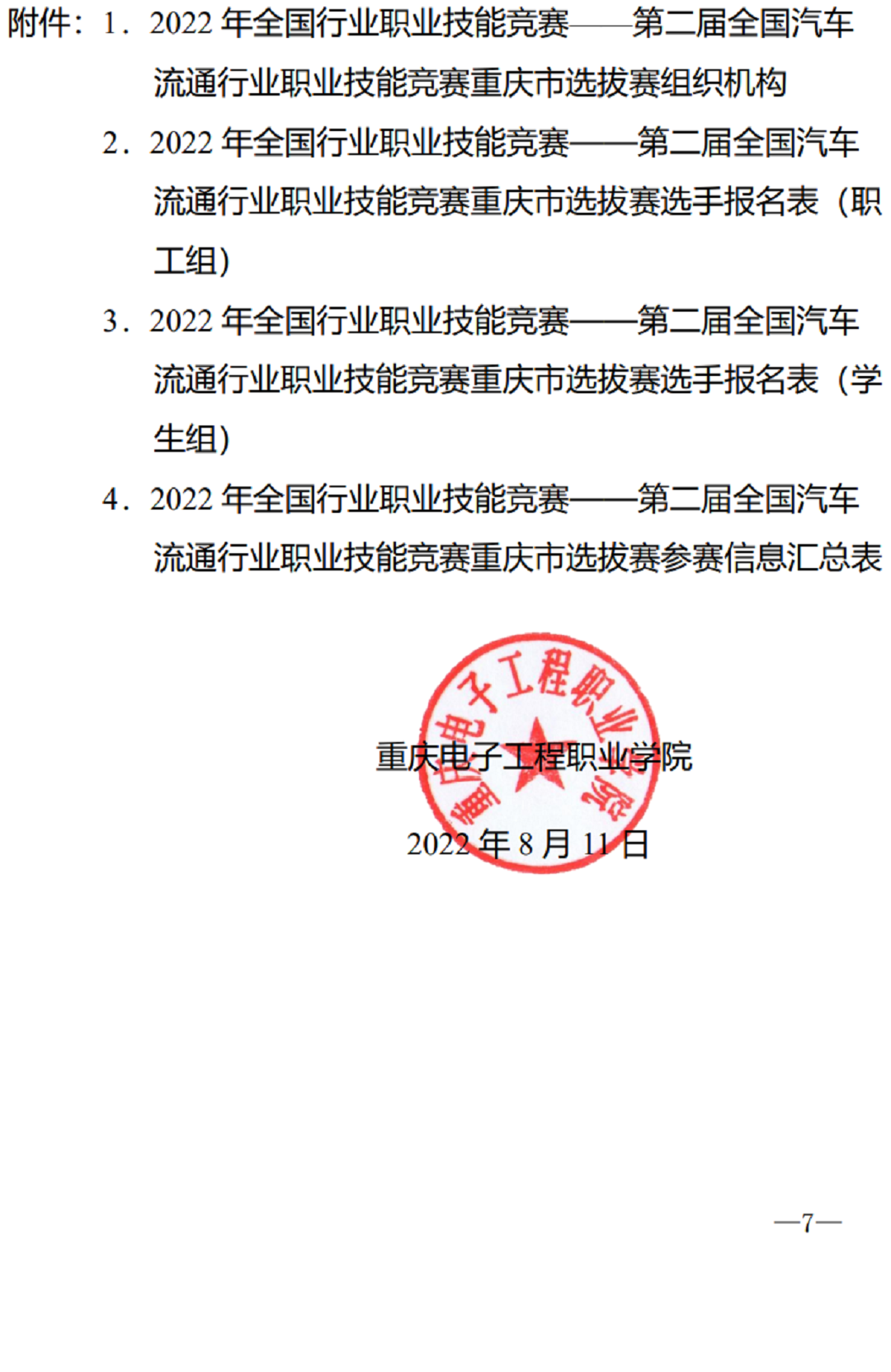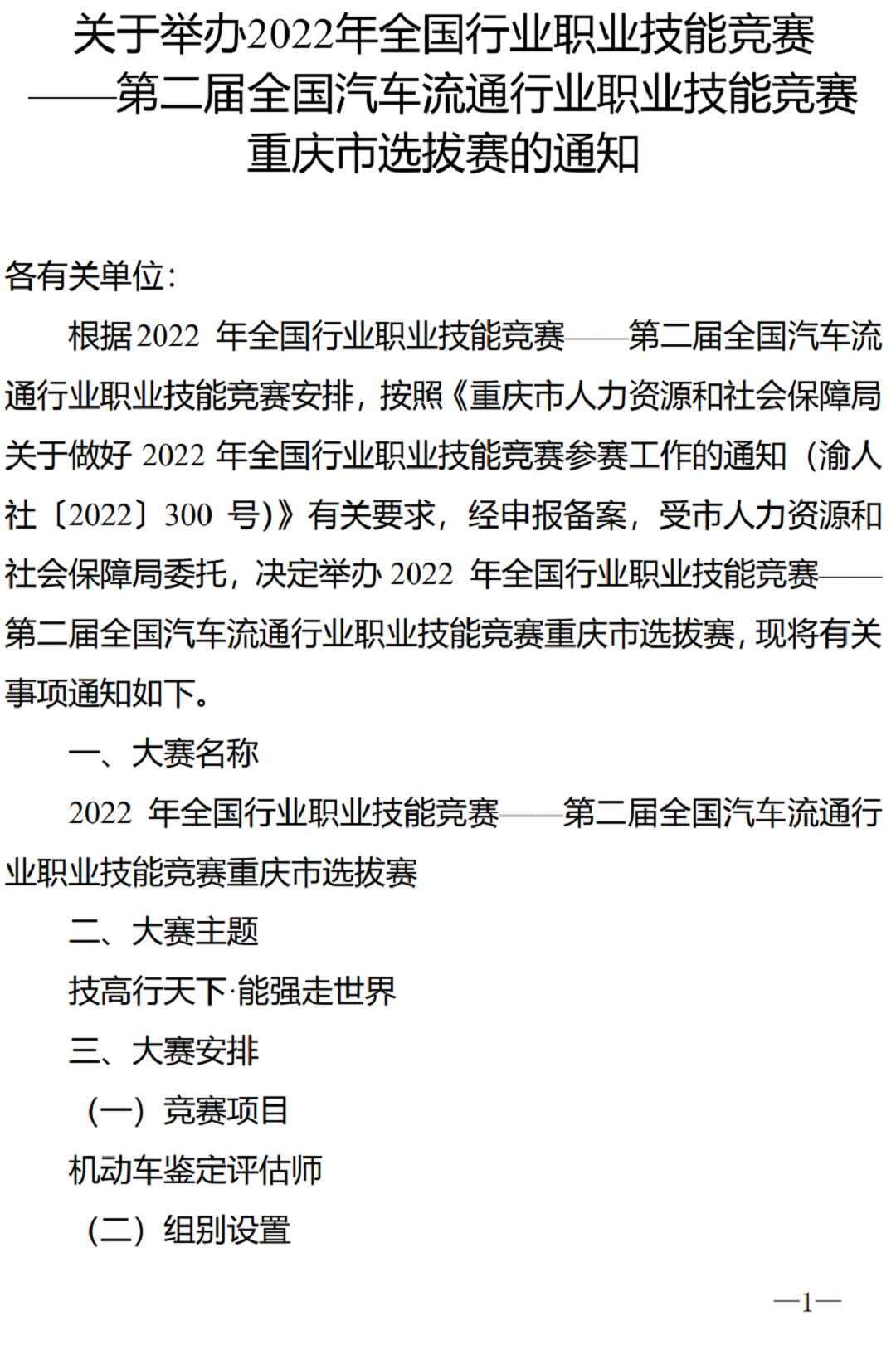 关于举办2022 年全国行业职业技能竞赛——全国汽车流通行业职业技能竞赛重庆市选拔赛通知