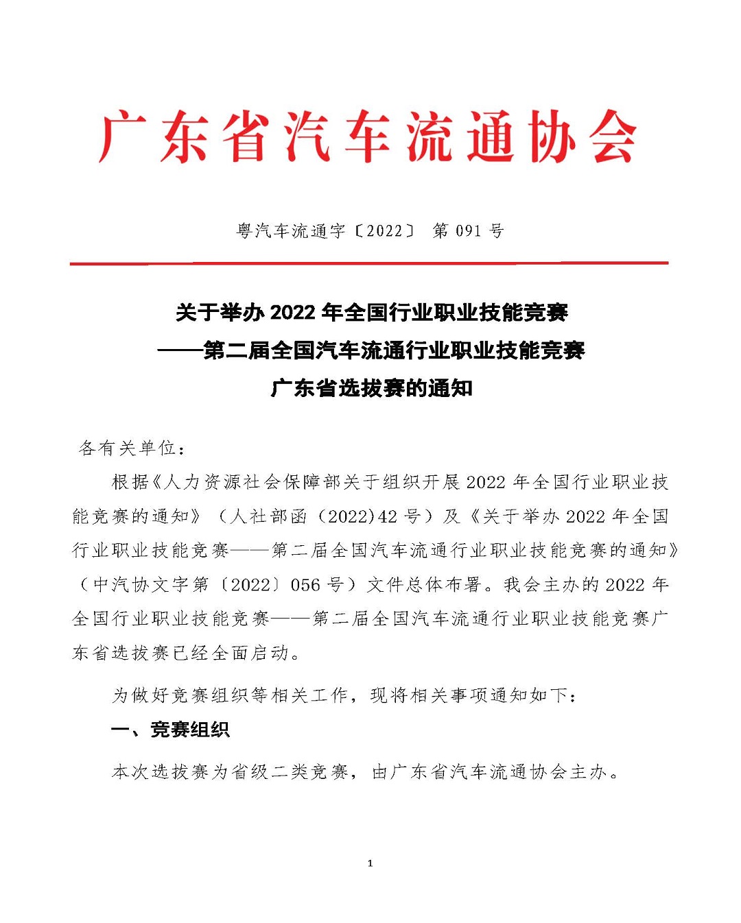 关于举办第二届全国汽车流通行业职业技能竞赛广东省选拔赛的通知