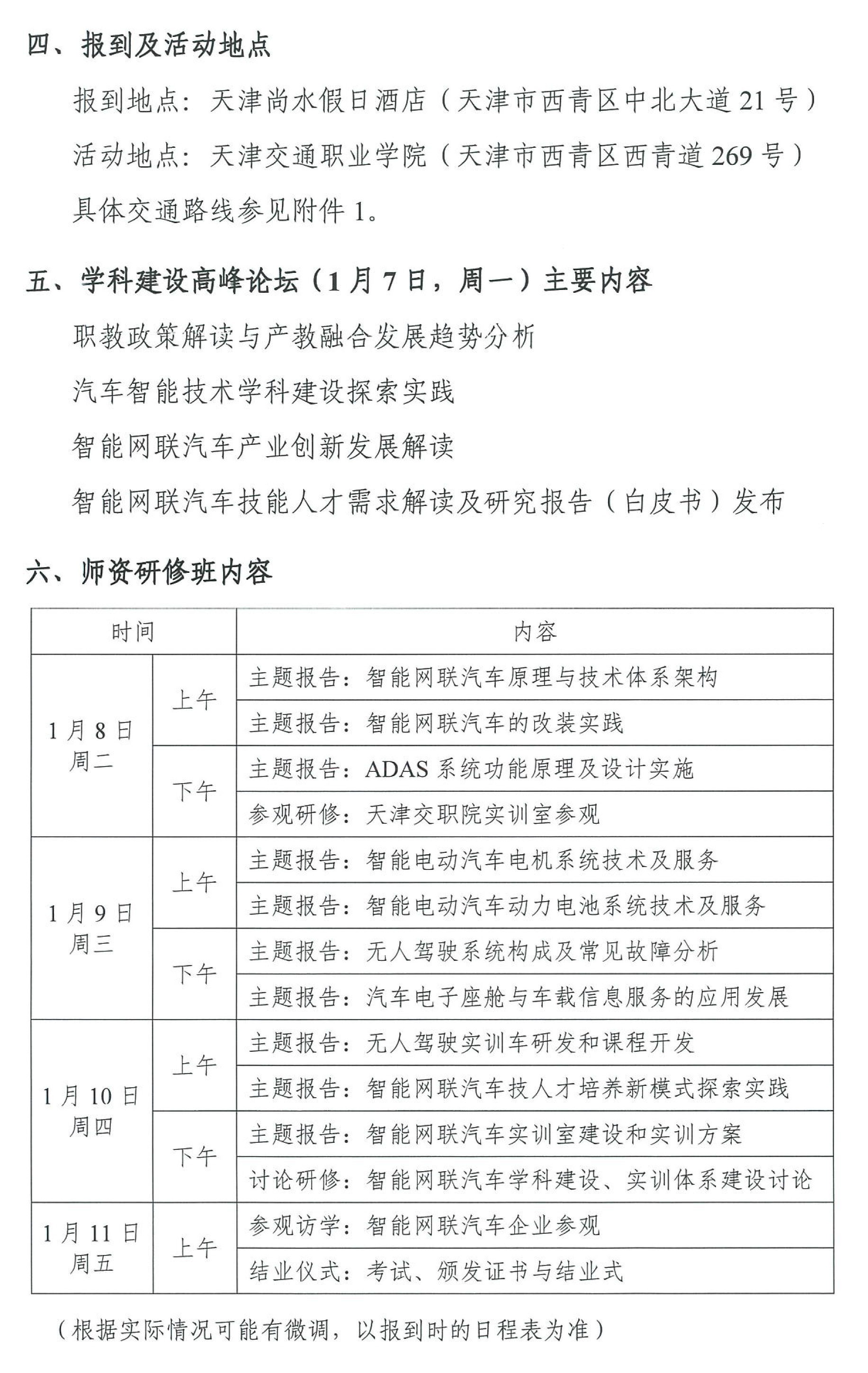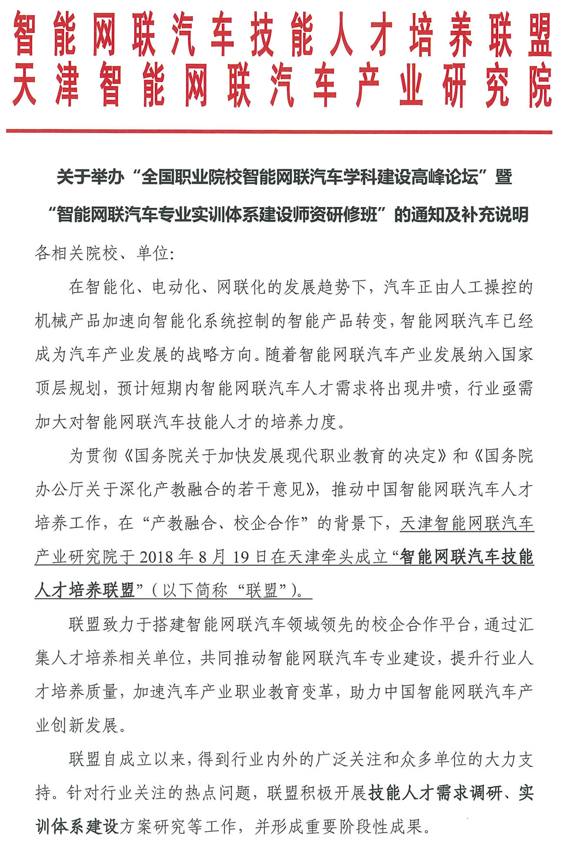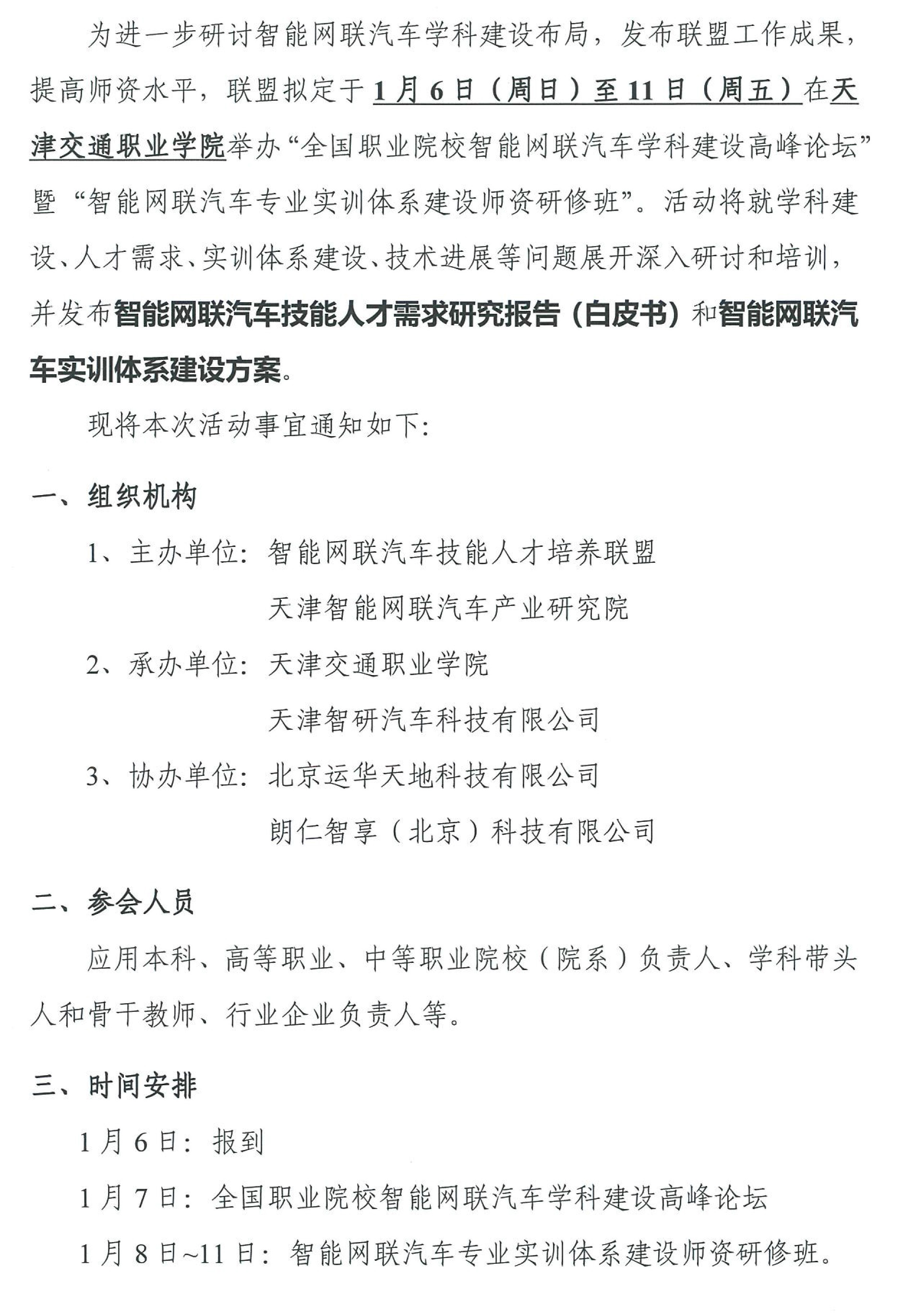 “智能网联汽车专业实训体系建设师资研修班”的通知及补充说明