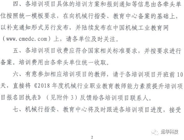 2018机械行业职业教育教师能力素质提升培训项目具体通知请登陆www.cmedc.com机械行指委官网查询。