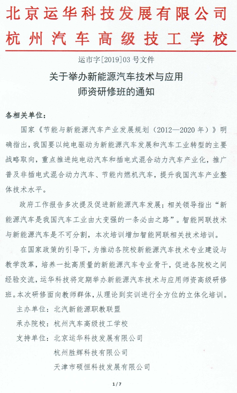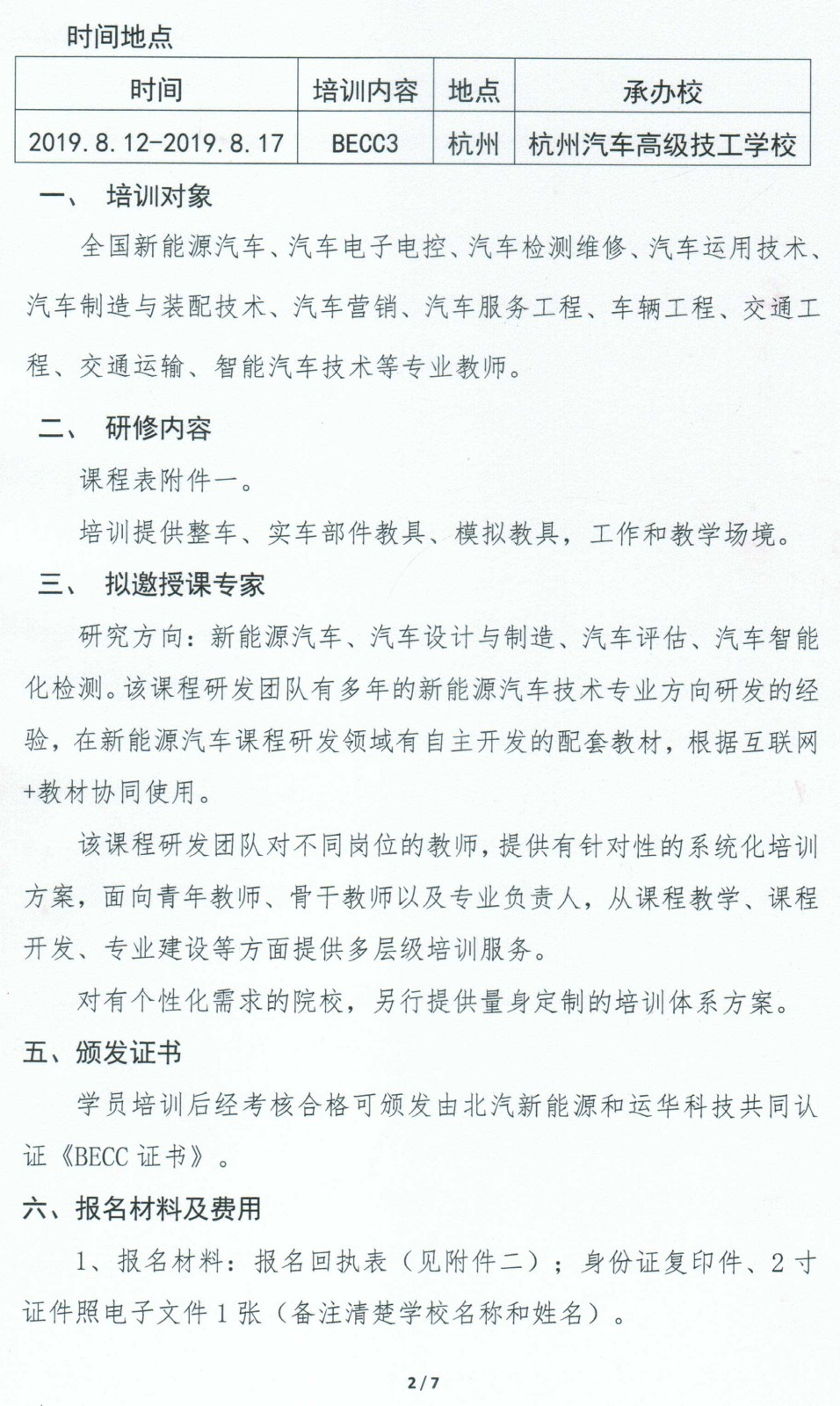 关于举办北汽新能源汽车技术与应用师资研修班的通知(浙江·杭州)